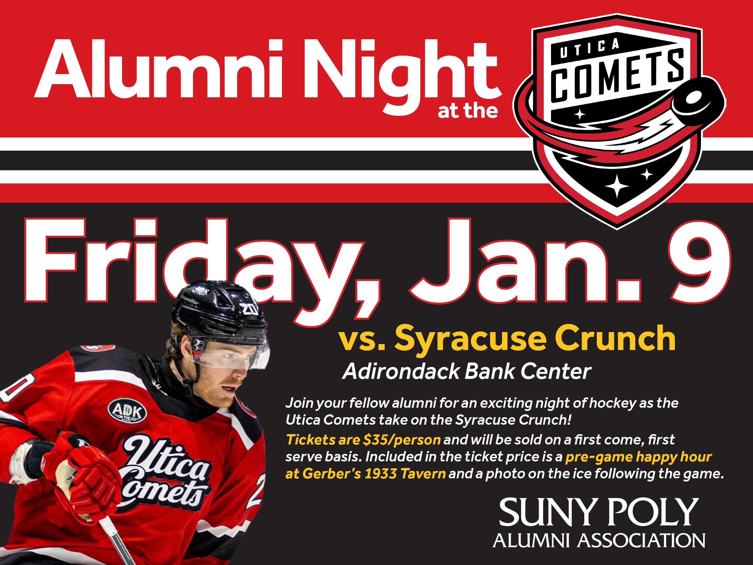 SUNY Poly alumni and friends are coming together for a series of exciting events, and we’d love for you to join us! From networking opportunities to fun social gatherings, these events are a great way to connect with fellow Wildcats. Check out our upcoming events and secure your spot today! Whether you’re reconnecting with old classmates or experiencing SUNY Poly in a new way, there’s something for everyone. To register for the events please visit https://sunypoly.edu/alumni/events. You can contact the Alumni Association at alumni@sunypoly.edu or call (315) 792-7276.