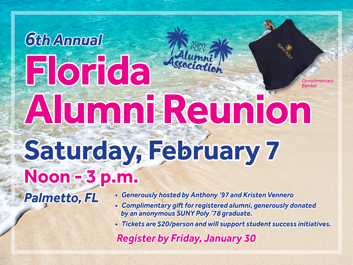 SUNY Poly alumni and friends are coming together for a series of exciting events, and we’d love for you to join us! From networking opportunities to fun social gatherings, these events are a great way to connect with fellow Wildcats. Check out our upcoming events and secure your spot today! Whether you’re reconnecting with old classmates or experiencing SUNY Poly in a new way, there’s something for everyone. To register for the events please visit https://sunypoly.edu/alumni/events. You can contact the Alumni Association at alumni@sunypoly.edu or call (315) 792-7276.
