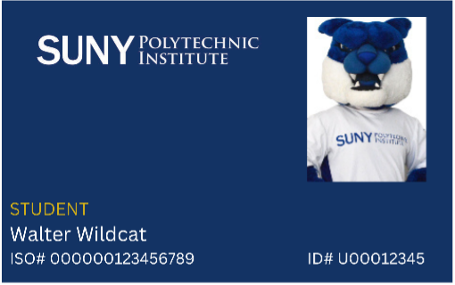 Your ID card is your official SUNY Poly identification that is issued by SUNY Poly Auxiliary Services to all members of the University community. It is required for identification and access to essential campus services. It also offers access to your meal plan, dorm room, and to make purchases with Wildcat Dollars. All students, faculty, and staff at SUNY Poly are required to have their ID in their possession at all times while on campus.