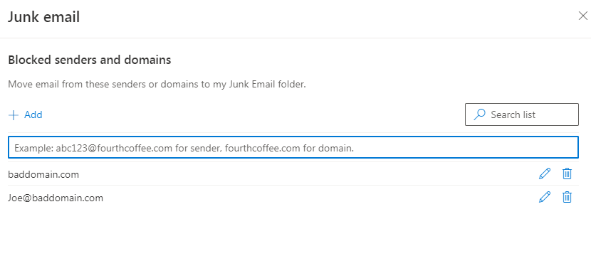- You can also edit or delete an address or domain by using the Pencil or Trash Can icons as shown in step 2.