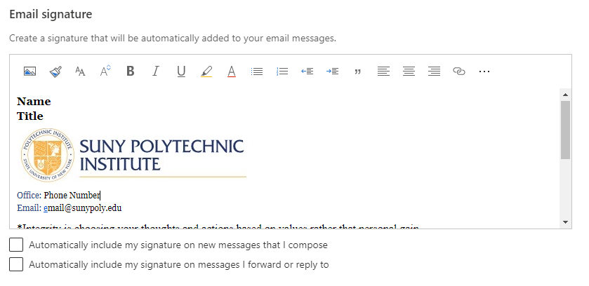 Under Email signature, type your signature and use the available formatting options to change its appearance.