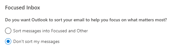 Focused Inbox separates your inbox into two tabs—Focused and Other. Your most important email messages are on the Focused tab while the rest remain easily accessible—but out of the way—on the Other tab.