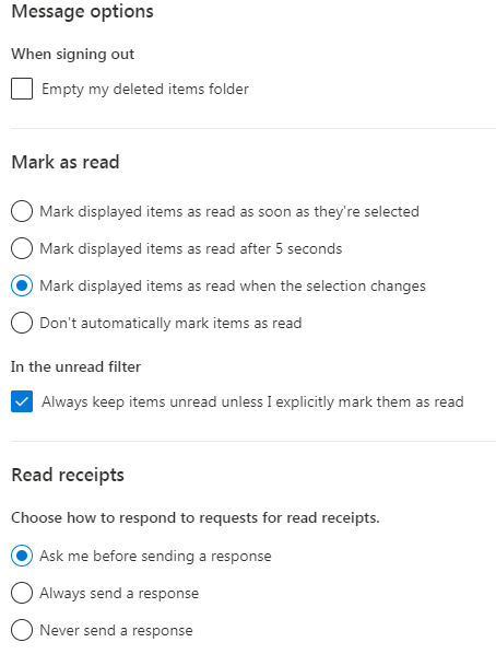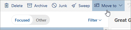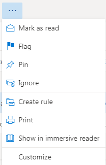 - Choose More commands on the command bar to mark messages as read or unread, pin a message at the top of the message list, or flag a message for follow up.