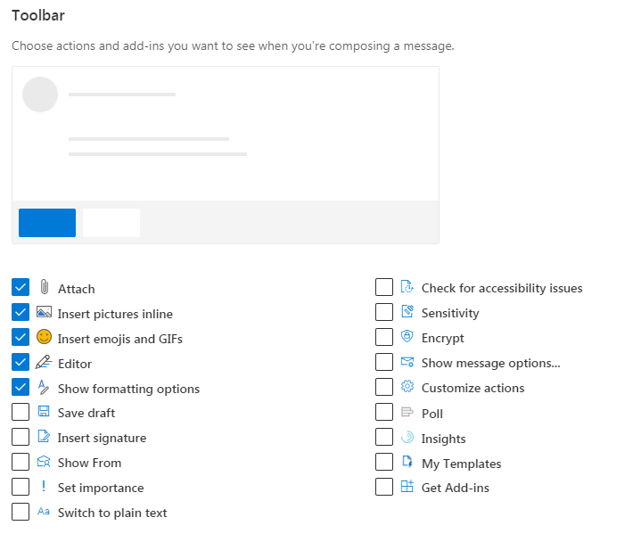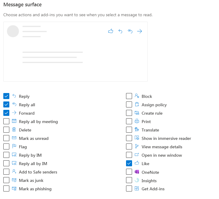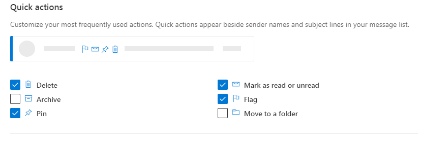 Customize your most frequently used actions. Quick actions appear beside sender names and subject lines in your message list.