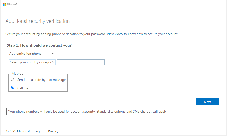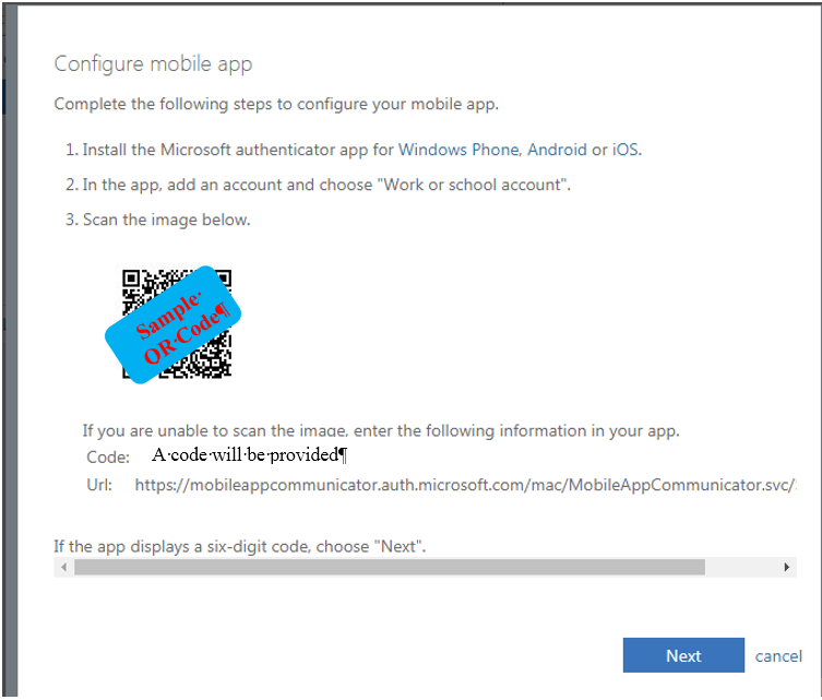 You will have the option of using your cell phone to receive the authorization code via text or call, or the Microsoft Authenticator mobile app that can be installed through the app store on your phone.