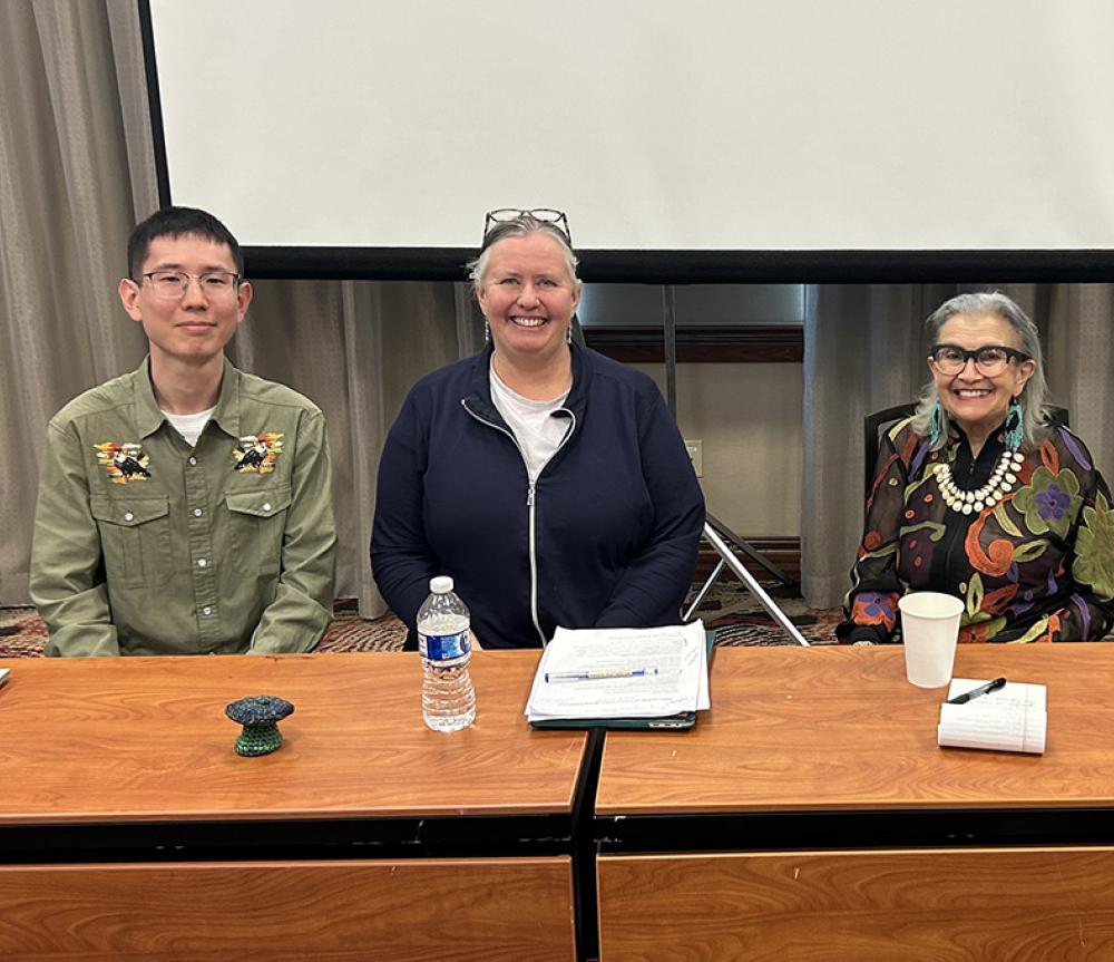 SUNY Poly's Dr. Kathryn Stam (pictured in the middle) presented a talk, "The Rainbow Body and the Material Remains," at the Anthropology of Consciousness Spring Conference in St. Louis, MO, April 9, 2024. Panelists Yadong Li, Dr. Stam, and Phylis Passariello are pictured here at their panel, "Beyond the Human, Beyond the Living."