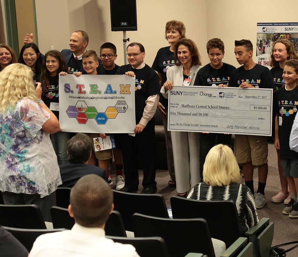 Albany, NY – As part of the 6th annual “Be the Change for Kids” Innovation Awards presented by the New York State School Boards Association (NYSSBA) and SUNY Polytechnic Institute (SUNY Poly), three school districts from different New York State regions have each been selected to receive $5,000 prizes. The goal of the award is to honor and promote new educational approaches to science, technology, engineering, and math-related (STEM) programs in public schools.