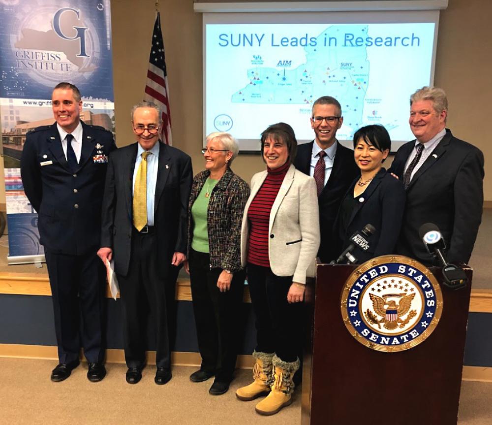Standing at the Griffiss Institute, U.S. Senator Charles E. Schumer today detailed the many investments in research capabilities in the Mohawk Valley, at SUNY Poly and the Quantum Computing Center of Excellence at the Air Force Research Laboratory Information Directorate (Rome Lab), all enhance New York State’s competitiveness to capture emerging opportunities in quantum information science (QIS). Specifically, Schumer threw his support behind SUNY’s planned bid to be named one of several new “National Centers of Quantum Science Research and Education” that were spurred by the recently-passed National Quantum Initiative Act.