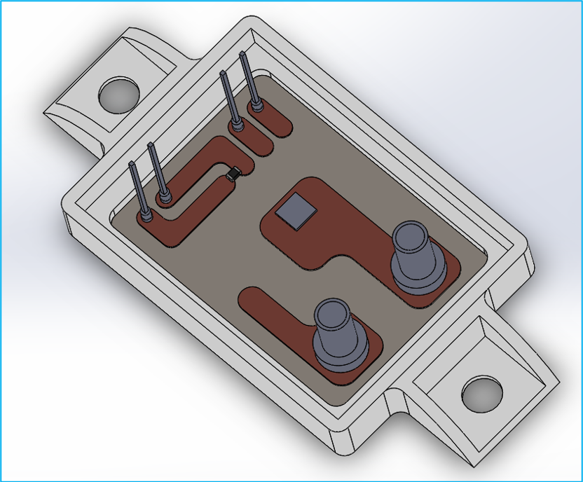 | Discrete high voltage package designed at SUNY Poly and packaged at Quik-Pak (Escondido, CA) | Open cavity TO-247 package for low voltage (1.2kV) SiC MOSFETs |